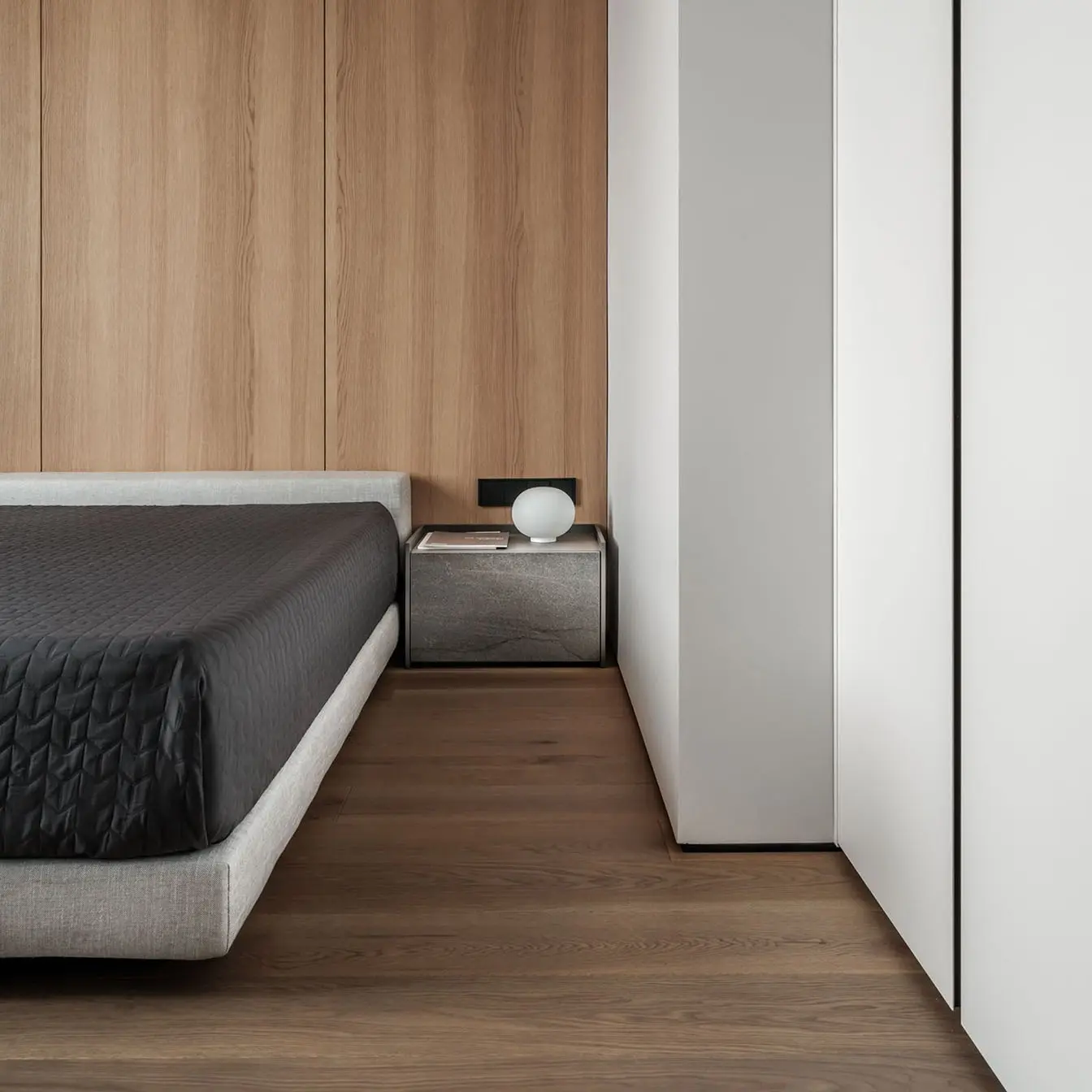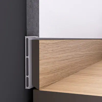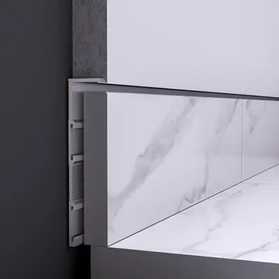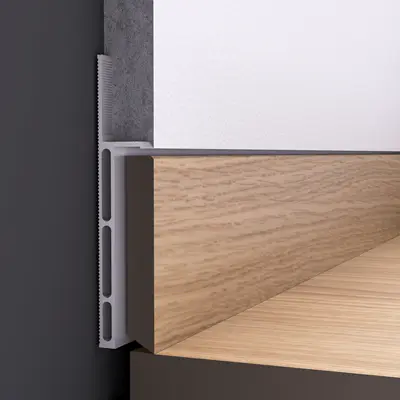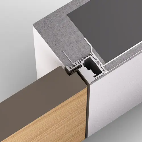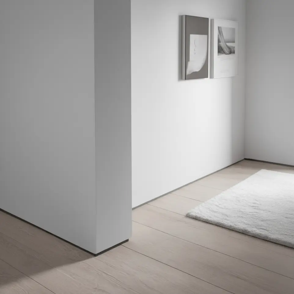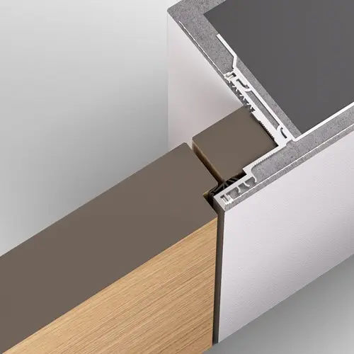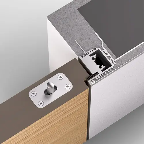 La transition critique entre le cadre de porte et la maçonnerie est résolue grâce au treillis de plâtre clipsable, garantissant une connexion ferme et directe. Cette solution brevetée crée des lignes parfaitement droites sans cadre visible ni joint acrylique.