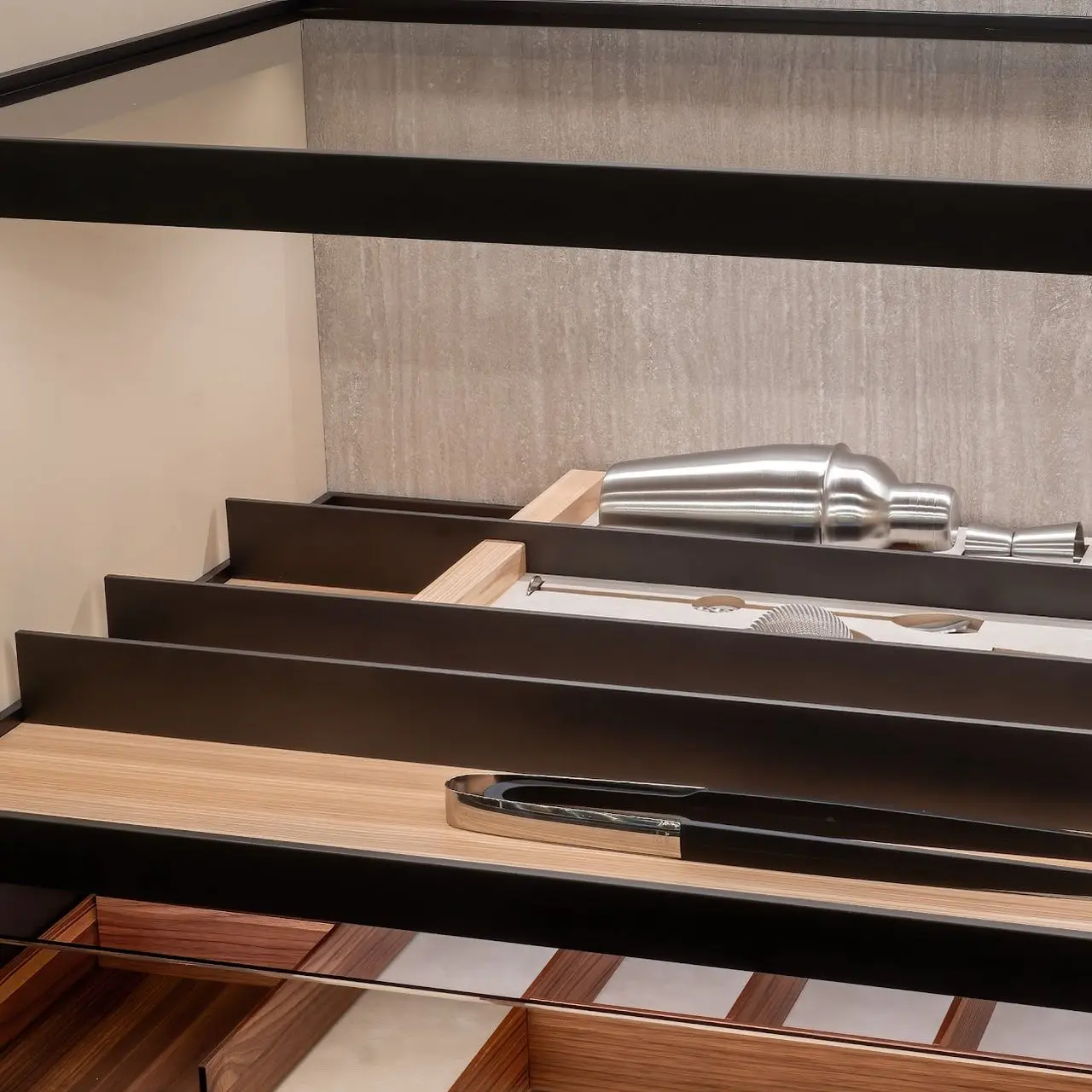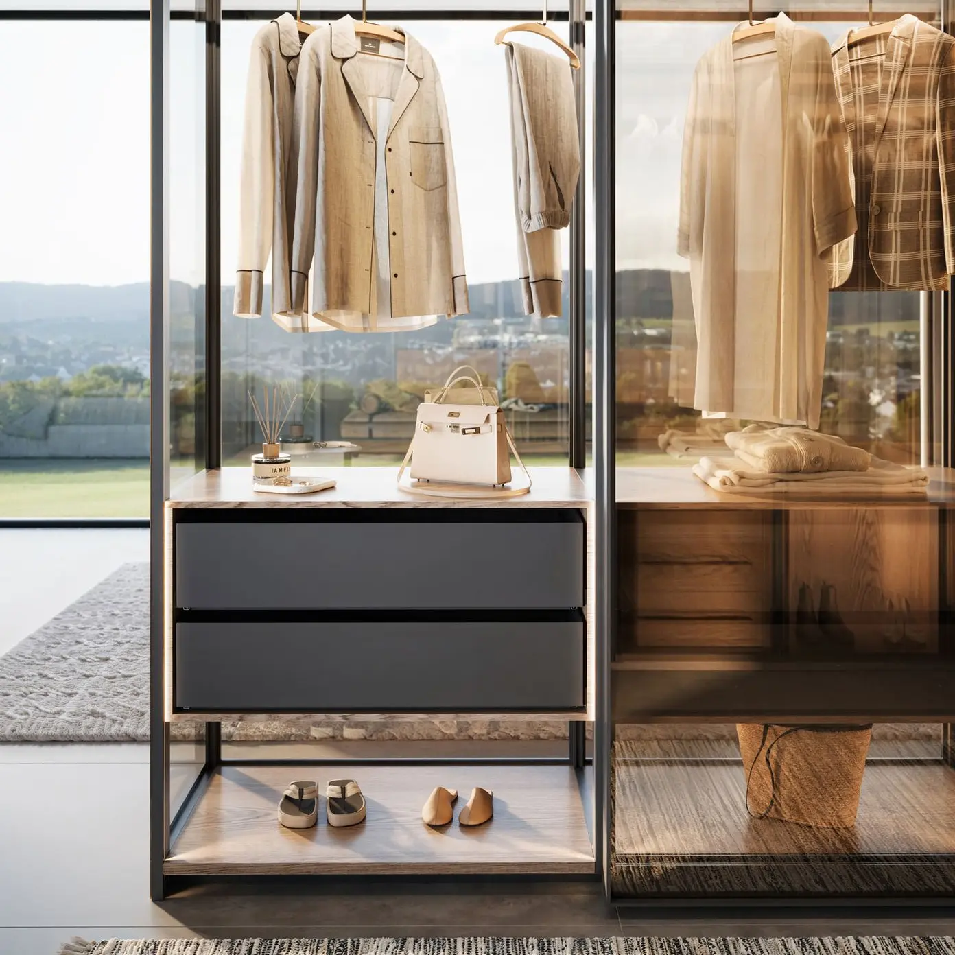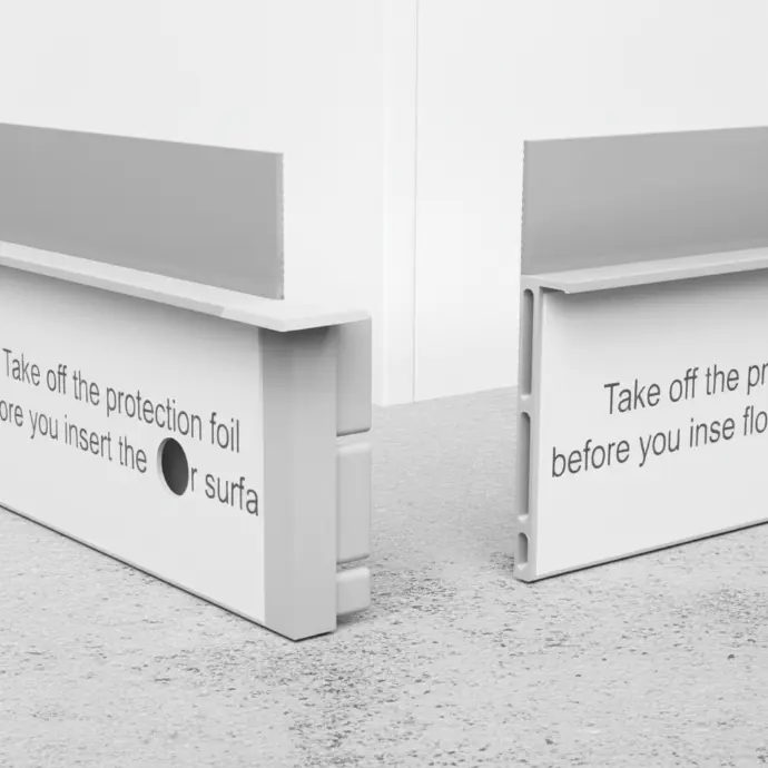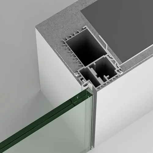 Les cadres marqués customized sont préfabriqués selon les spécifications du client. Une fois les propriétés définies, les profilés sont coupés à longueur et usinés avec tous les fraisages nécessaires pour accueillir les raccords. Livrés en kit complet, les cadres peuvent être assemblés et montés en quelques étapes directement devant l'ouverture murale correspondante.